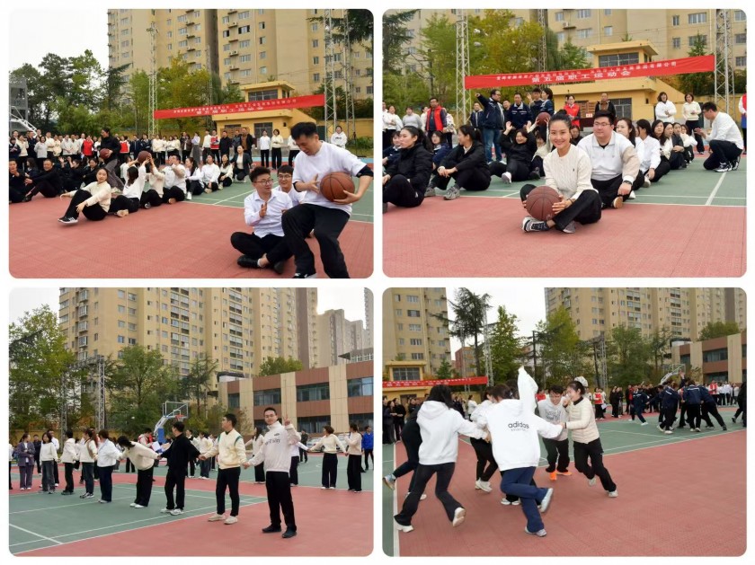 传球接力与一穿到底相映成趣。传球接力要求队员精准配合,篮球在队员间流畅传递;一穿到底则考验身体灵活性,队员们手拉手,敏捷地从彼此搭建的臂下通道中快速穿梭。两个项目一动一静,共同诠释了团队协作的真谛。